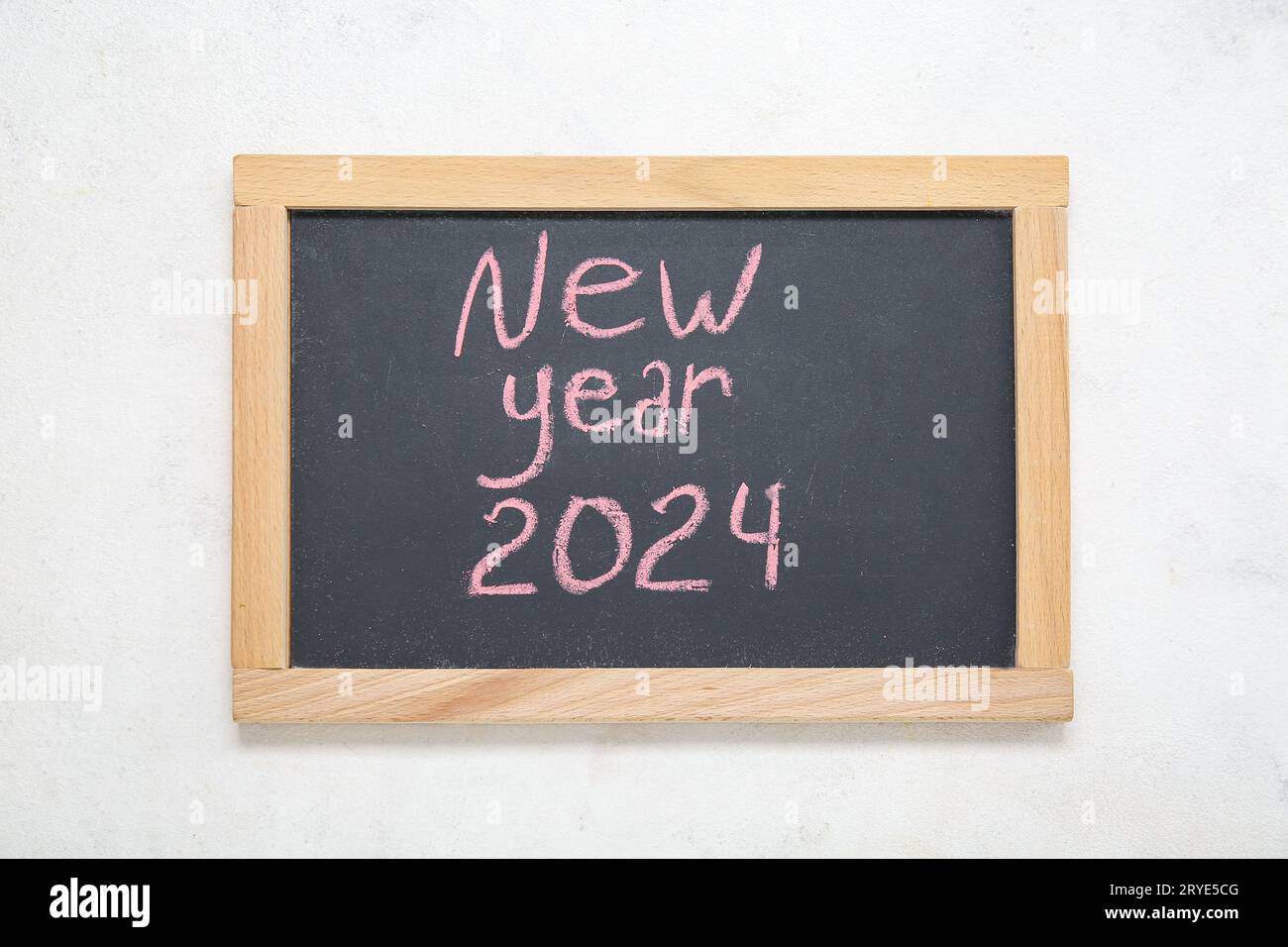 Source : www.shutterstock.comBlackboard with text NEW YEAR 2024 on white background Stock Photo