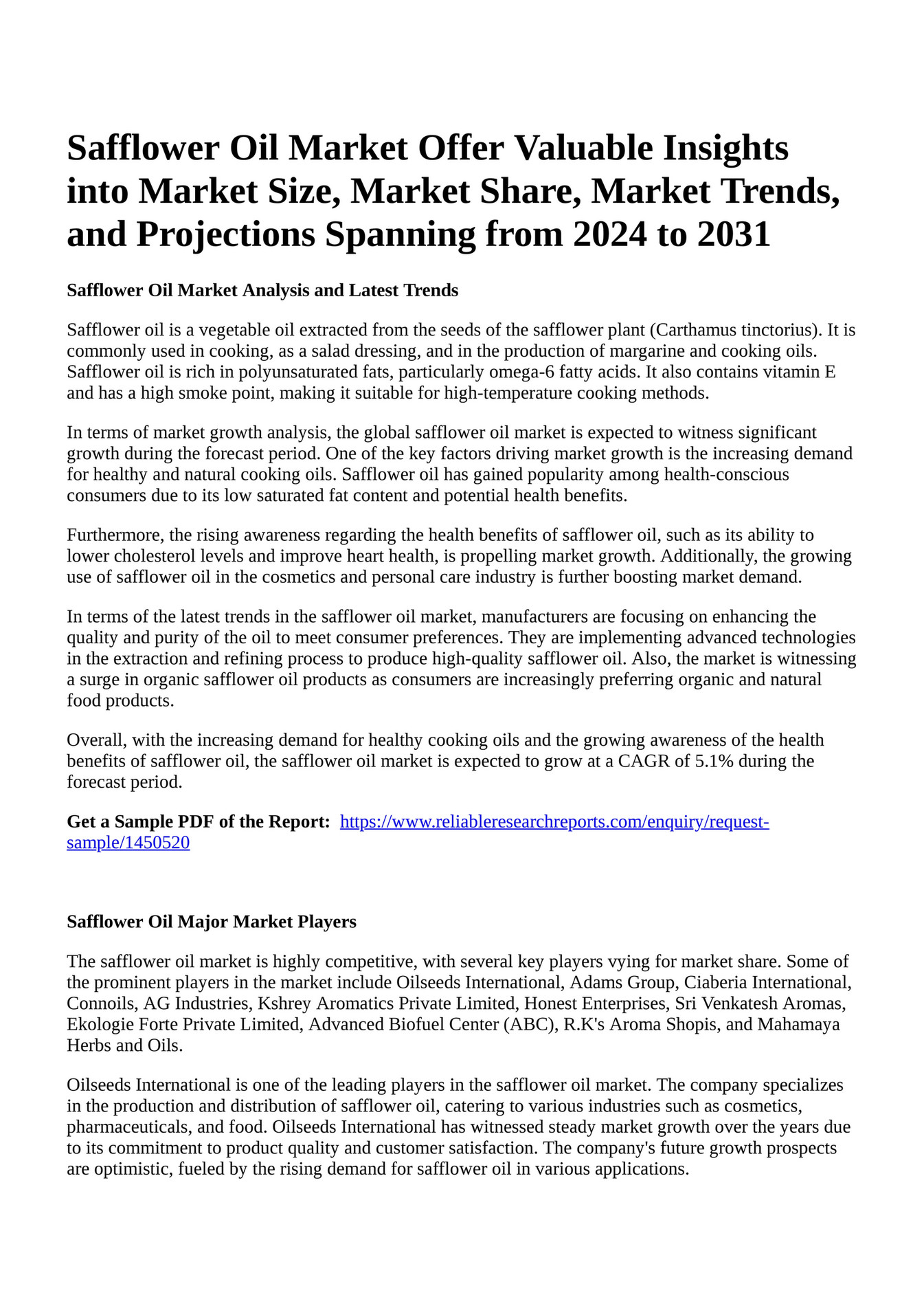 Source : m.facebook.comReportprime Safflower Oil Market Offer Valuable Insights into